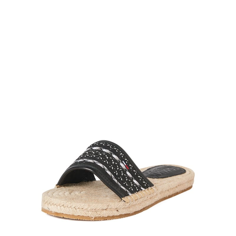 Klapki damskie Tommy Jeans, Tkanina i skóra, Zaokrąglony czubek, Podeszwa z efektem plecionki, Szerokie paski ze wzorem w paski, Wysokość obcasa w rozmiarze 39: 1,5 cm, Wysokość cholewki: , Szerokość cholewki: