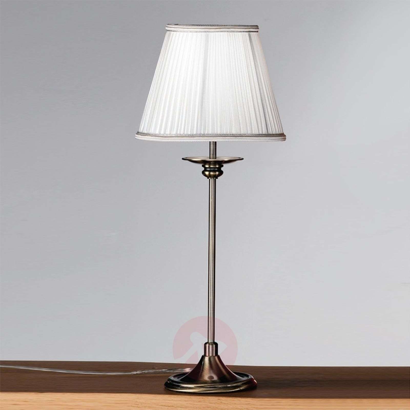 Piękna lampa stołowa Ellen z białym abażurem Ta lampa stołowa to esencja klasycznego stylu: metalowa noga w połączeniu z białym abażurem. Jest ona zasadniczo uosobieniem typowej lampy stołowej w formie, w jakiej projektowano ją od niepamiętnych czasów - udowadnia przez to, że innowacje nie są konieczne, bowiem również klasyka może prezentować się bardzo atrakcyjnie. Sprawdzony po wielekroć i dobrze znany wzór podlega o wiele mniej wpływom mody, niż wyposażenie, wpisujące się w aktualne trendy. Właśnie ze względu na tę ponadczasowość lampa stołowa będzie pasowała równie dobrze do wnętrz o nowoczesnej, jak i klasycznej aranżacji. Klasa efektywności energetycznej: A++