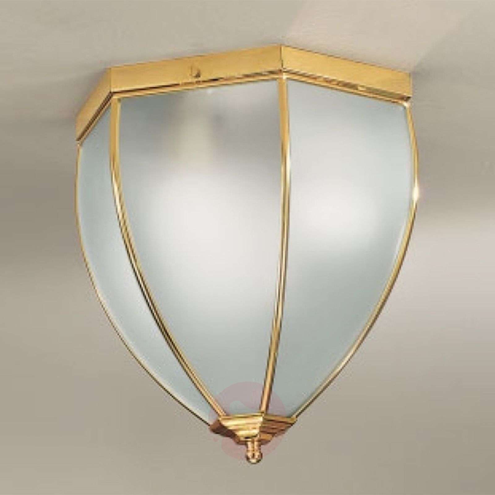 Reprezentacyjna lampa sufitowa DINA z błyszczącą, pozłacaną powierzchnią Lampa sufitowa DINA z satynowanymi na kolor biały, szklanymi kloszami zapewnia równomierne, nastrojowe oświetlenie ogólne. Rama metalowa o estetycznym kształcie ma kolor złoty i przyczynia się do eleganckiego i reprezentacyjnego wyglądu ogólnego lampy sufitowej. DINA będzie efektownym i ciekawym akcentem we wnętrzach urządzonych w stylu nowoczesnym, jak również klasycznym. Klasa efektywności energetycznej: A++
