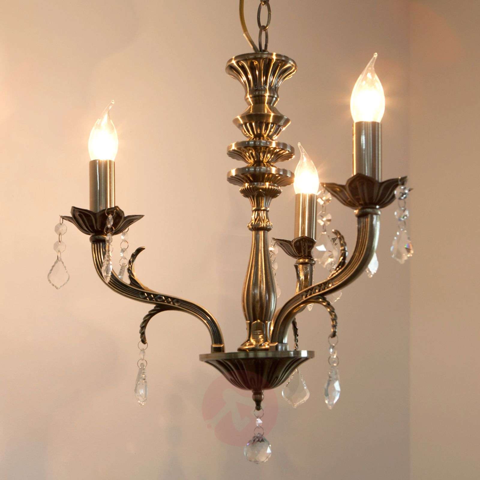 Elegancki żyrandol Palazza z trzema źródłami światła Żyrandol Palazza stworzy wprowadzi do domu styl. Staranne wykończenie w kolorze postarzanego mosiądzu oraz mieniące się szklane elementy nadają żyrandolowi wyjątkowy wygląd. Umieszczony w salonie czy nad stołem w jadalni żyrandol Palazza zapewni piękny blask oraz romantyczne chwile, gdyż istnieje możliwość ściemniania światła. Połączenie różnych form czyni lampę jeszcze bardziej interesującą. Klasa efektywności energetycznej: A++