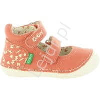 Skórzane buty dla dziewczynki KicKers w kolorze koralowym.
