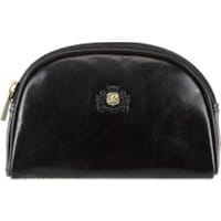 Kosmetyczka z kolekcji Italy Elegancka kosmetyczka w kształcie półksiężyca wykonana z miękkiej skóry cielęcej, ozdobiona logo - inicjałami otoczonymi tarczą w kolorze starego złota na wytłoczonym herbie. Szykowny wygląd podkreślają widoczne jarzma naturalnej skóry licowej. zamykana na suwak; wewnątrz kieszeń zamykana na suwak; wymiary: 10 cm x 16 cm x 3 cm.