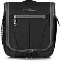 Kosmetyczka marki VIP Collection. Wykonana z bardzo wytrzymałego materiału. Idealna do przechowywania kosmetyków zarówno w domu jak i w podróży. Wewnątrz: komora zamykana na suwak; 3 kieszenie, w tym 2 z siatki oraz jedna przezroczysta; 4 miejsca na gumkę, zabezpieczające kosmetyki przed przemieszczaniem; 3 przezroczyste miejsca na kosmetyki; wieszak. Dodatkowo: z przodu kieszeń zamykana na suwak; dwie kieszenie po bokach, w tym jedna z siatki oraz druga zamykana na suwak; wygodny uchwyt ułatwiający przenoszenie.