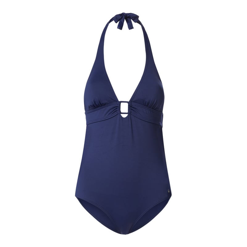 Kostium kąpielowy damski s.Oliver RED LABEL, Elastyczny materiał , Dopasowany krój , Bez fiszbin, bez watowania , Wiązanie na szyi , Głęboki dekolt z ozdobną patką i wycięciem , Aplikacja z logo , Zapięcie na klamrę z tyłu , Długość tyłu w rozmiarze 36 A/B: 62 cm