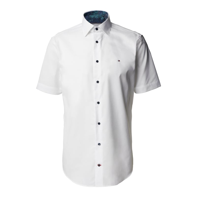 Koszula biznesowa męska Tommy Hilfiger, Czysta bawełna, Krój regular fit, Kołnierzyk typu kent, Listwa guzikowa na całej długości, Subtelne wyhaftowane logo, Zaokrąglony dół, Krótkie rękawy, Easy Care, Długość tyłu w rozmiarze 40: 80 cm, Szerokość ramion w rozmiarze 40: 46 cm, Długość rękawa w rozmiarze 40: 25 cm