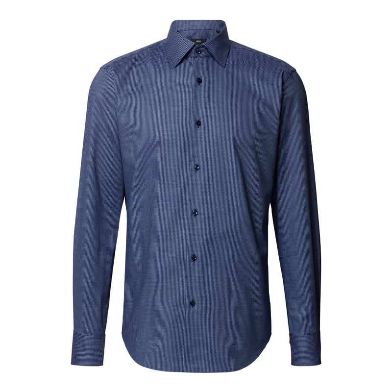 Koszula biznesowa męska BOSS, Mieszanka bawełny z dodatkiem streczu, Krój regular fit, Wzór na całej powierzchni, Kołnierzyk typu kent, Listwa guzikowa, Sportowe mankiety, Długość tyłu w rozmiarze 40: 78 cm, Szerokość ramion w rozmiarze 40: 48 cm, Długość rękawa w rozmiarze 40: 66 cm
