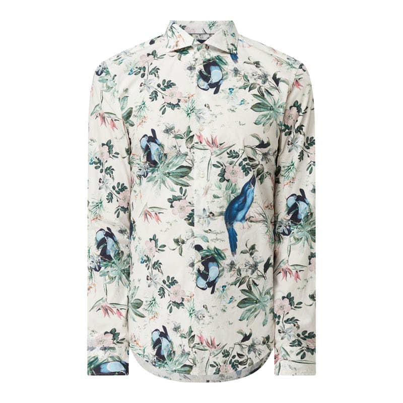 Koszula biznesowa męska JOOP!, Czysta bawełna , Krój slim fit, Wzór na całej powierzchni , Kołnierzyk typu cutaway , Długie rękawy, Listwa guzikowa , Sportowe mankiety , Długość tyłu w rozmiarze 40: 75 cm, Szerokość ramion w rozmiarze 40: 43 cm, Długość rękawa w rozmiarze 40: 67 cm