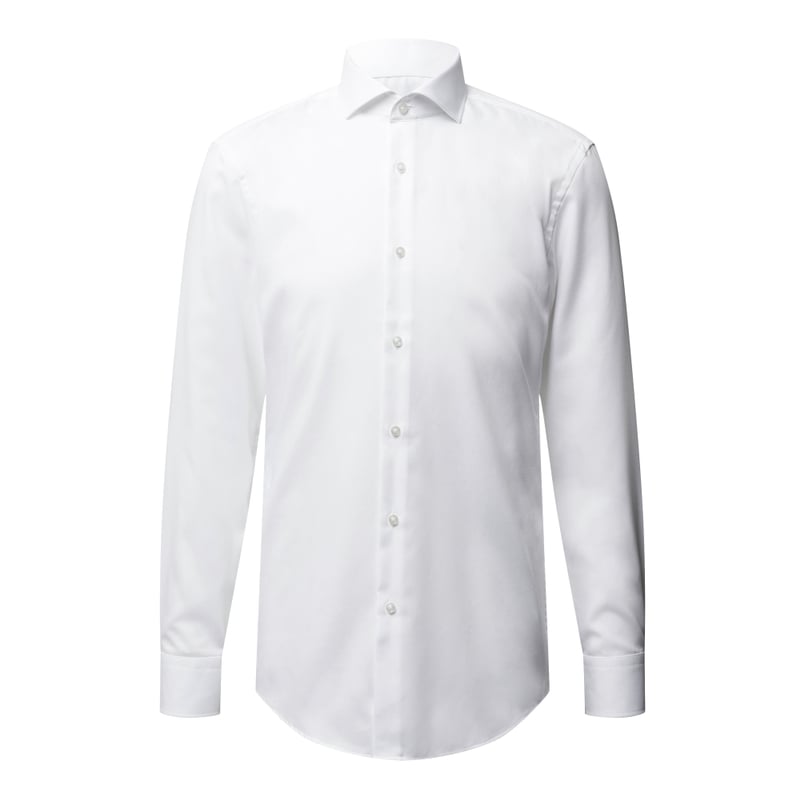 Koszula biznesowa męska BOSS, Czysta bawełna , Krój slim fit , Model Jason, Diagonal , Kołnierzyk typu cutaway , Długi rękaw, Listwa guzikowa , Sportowe mankiety, Łatwe prasowanie, Długość tyłu w rozmiarze 40: 79 cm, Szerokość ramion w rozmiarze 40: 45 cm, Długość rękawa w rozmiarze 40: 67 cm