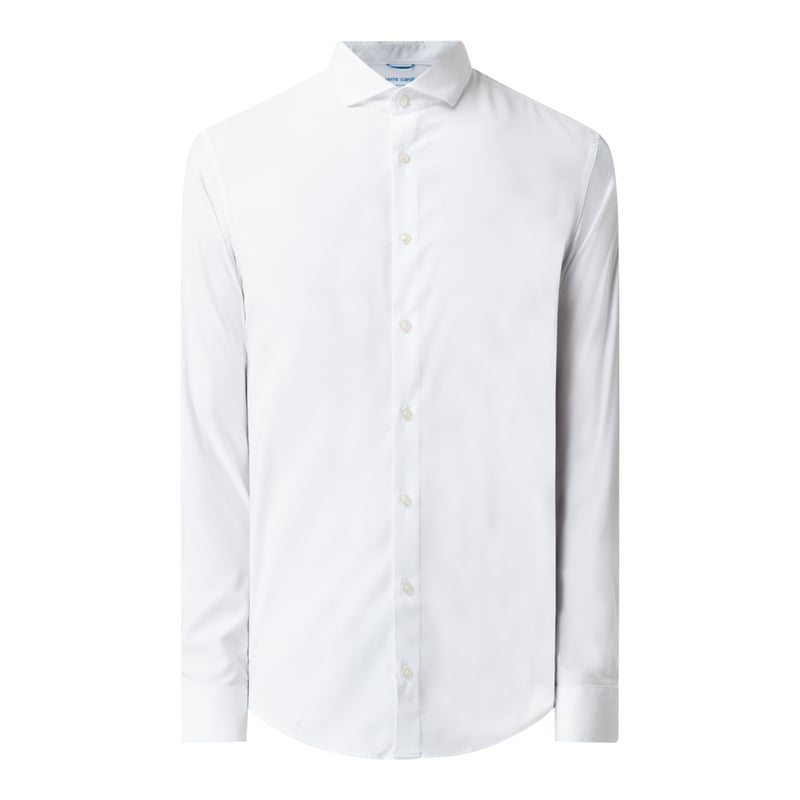 Koszula biznesowa męska Pierre Cardin, Oddychająca mieszanka materiałów z dodatkiem streczu , Krój slim fit, Kołnierzyk typu cutaway , Długie rękawy, Listwa guzikowa , Sportowe mankiety , Z regulacją wilgoci , Długość tyłu w rozmiarze M: 78 cm, Szerokość ramion w rozmiarze M: 43 cm, Długość rękawa w rozmiarze M: 66 cm