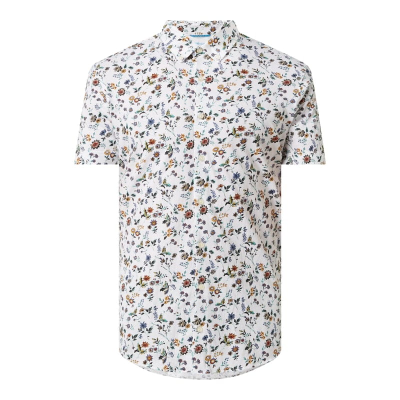 Koszula biznesowa męska Pierre Cardin, Czysta bawełna , Krój slim fit , Dżersej, Kwiatowy wzór, Kołnierzyk typu button down , Krótkie rękawy , Listwa guzikowa , Technologia Futureflex, Wyjątkowa łatwość w pielęgnacji dzięki łatwemu w prasowaniu wykończeniu , Długość tyłu w rozmiarze M: 79 cm, Szerokość ramion w rozmiarze M: 45 cm