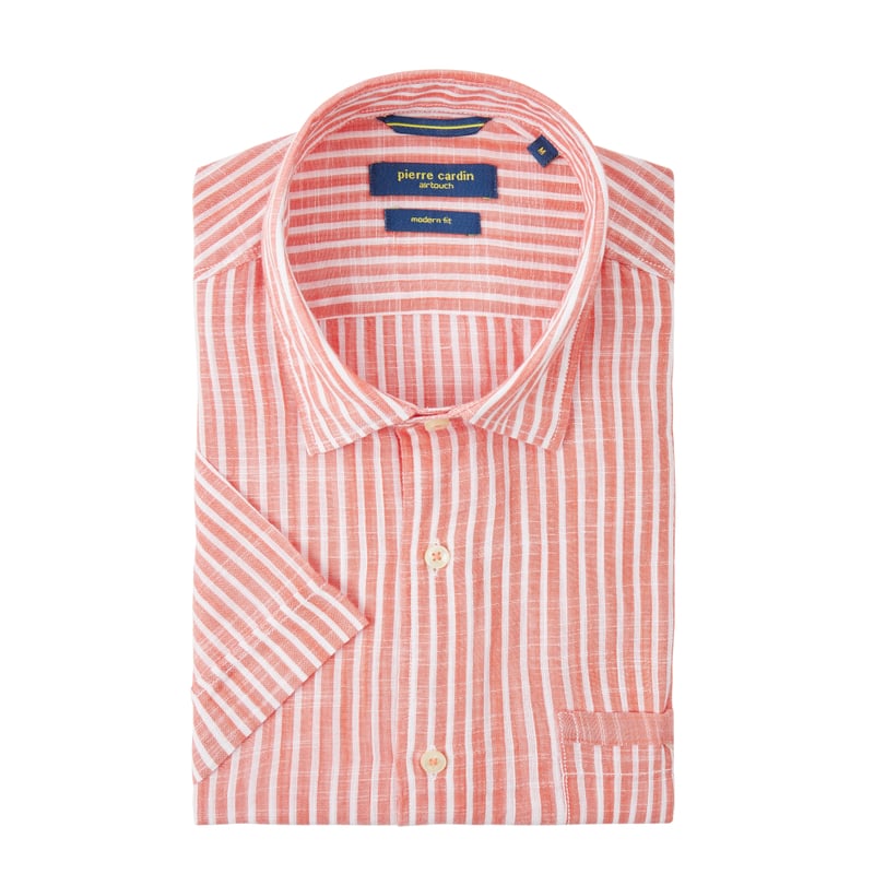 Koszula casualowa męska Pierre Cardin , Czysta bawełna , Krój modern fit , Wzór w paski , Kołnierzyk typu under button down , Krótkie rękawy , Listwa guzikowa , Kieszeń na piersi zapinana na guzik , Airtouch, Krój dostawcy „modern ft” odpowiada krojowi P&C „regular fit” , Długość tyłu w rozmiarze M: 76 cm, Szerokość ramion w rozmiarze M: 45 cm