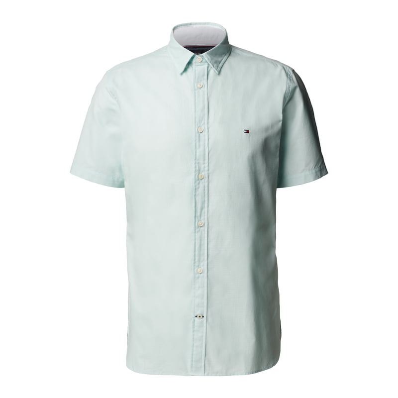 Koszula casualowa męska Tommy Hilfiger, Czysta bawełna ekologiczna, Krój regular fit, Kołnierzyk typu kent, Listwa guzikowa na całej długości, Subtelne wyhaftowane logo, Zaokrąglony dół, Wstawki ze wzorem w paski, Długość tyłu w rozmiarze M: 80 cm, Szerokość ramion w rozmiarze M: 46 cm, Długość rękawa w rozmiarze M: 25 cm