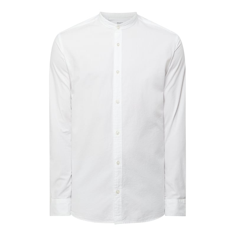 Koszula casualowa męska SELECTED HOMME, Czysta bawełna , Krój regular fit, Bawełna seersucker, Stójka, Długie rękawy, Listwa guzikowa, Sportowe mankiety, Długość tyłu w rozmiarze M: 76 cm, Szerokość ramion w rozmiarze M: 48 cm, Długość rękawa w rozmiarze M: 65 cm