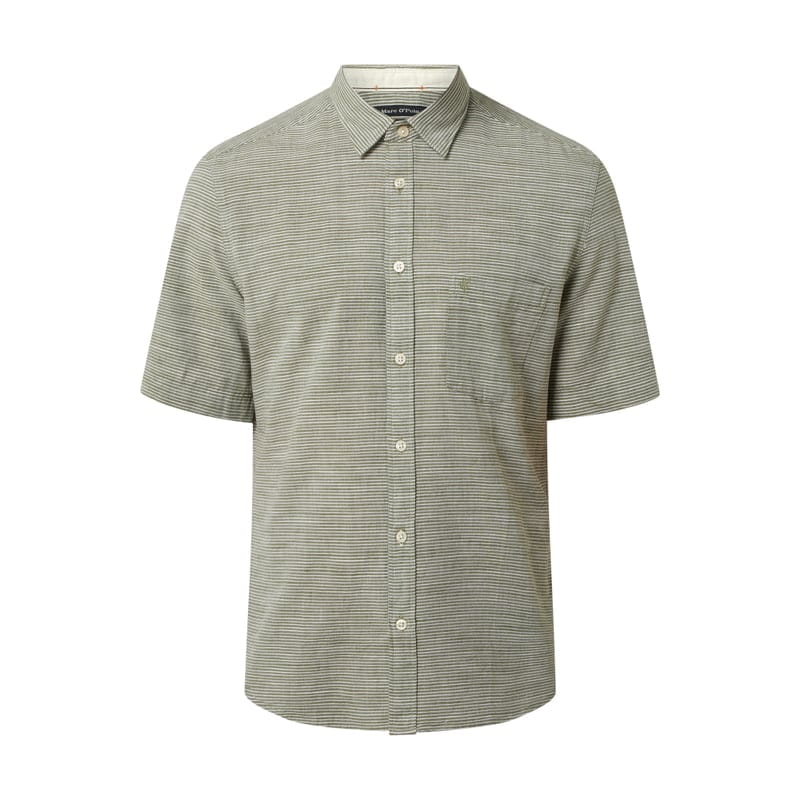 Koszula casualowa męska MARC O'POLO, Czysta bawełna , Krój regular fit , Drobne paski, Kołnierzyk new kent , Krótkie rękawy , Nakładana listwa guzikowa , Kieszeń na piersi z wyhaftowanym logo , Długość tyłu w rozmiarze M: 71 cm , Szerokość ramion w rozmiarze M: 47 cm