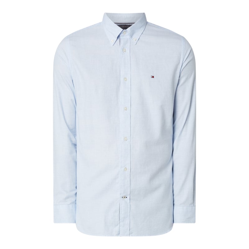 Koszula casualowa męska Tommy Hilfiger , Czysta bawełna , Krój regular fit , Delikatny tkany wzór , Kołnierzyk typu button down , Długie rękawy , Nakładana listwa guzikowa , Sportowe mankiety , Logo na piersi , Długość tyłu w rozmiarze M: 78 cm, Szerokość ramion w rozmiarze M: 43 cm, Długość rękawa w rozmiarze M: 64 cm