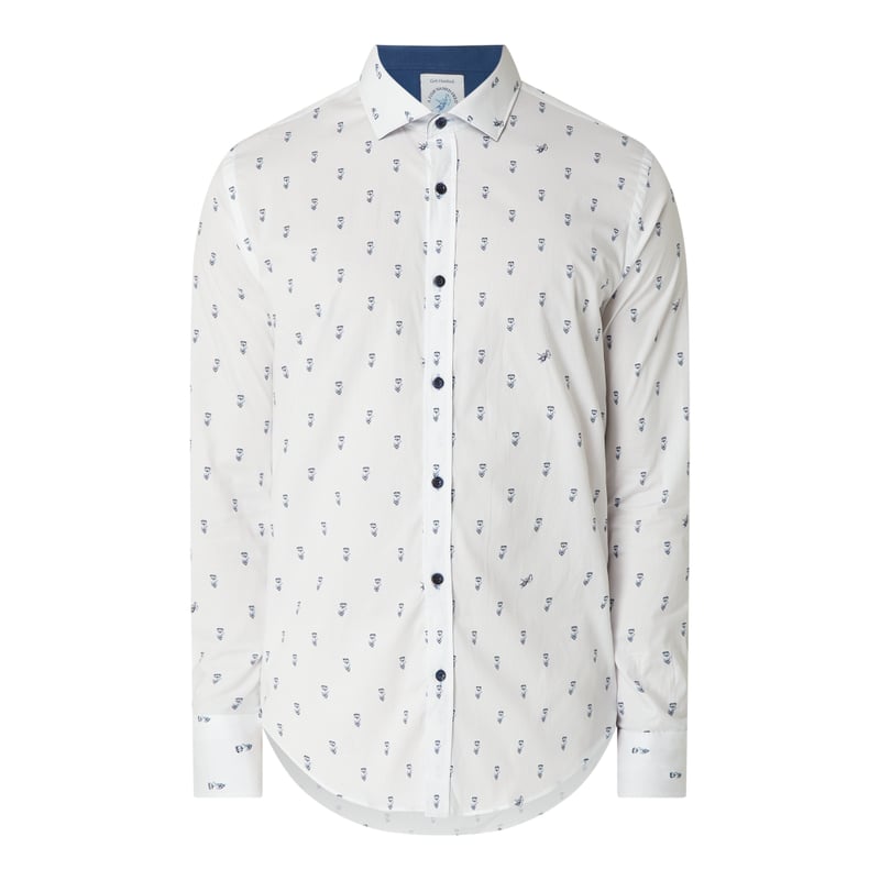 Koszula casualowa męska A Fish Named Fred, Mieszanka bawełny i elastanu, Krój regular fit, Wzór na całej powierzchni, Kołnierzyk typu kent, Długie rękawy, Listwa guzikowa, Sportowe mankiety, Długość tyłu w rozmiarze M: 77 cm, Szerokość ramion w rozmiarze M: 44 cm, Długość rękawa w rozmiarze M: 66 cm