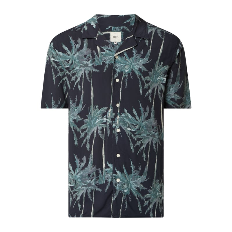 Koszula casualowa męska Redefined Rebel, Czysta wiskoza , Krój slim fit , Wzór na całej powierzchni , Kołnierzyk typu kent , Krótkie rękawy , Listwa guzikowa , Długość tyłu w rozmiarze M: 75 cm, Szerokość ramion w rozmiarze M: 46 cm