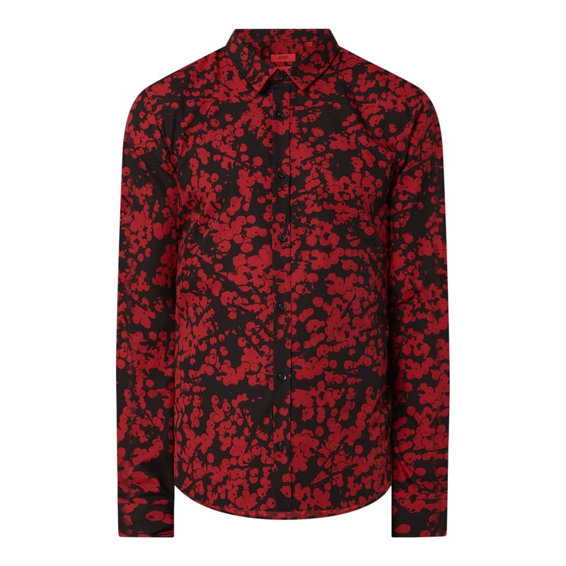 Koszula casualowa męska HUGO, Czysta bawełna , Krój extra slim fit, Wzór na całej powierzchni , Kołnierzyk typu kent, Długie rękawy, Listwa guzikowa , Sportowe mankiety , Długość tyłu w rozmiarze M: 75 cm, Szerokość ramion w rozmiarze M: 45 cm, Długość rękawa w rozmiarze M: 67 cm, Krój dostawcy „extra slim fit” odpowiada krojowi P&C „super slim fit”.
