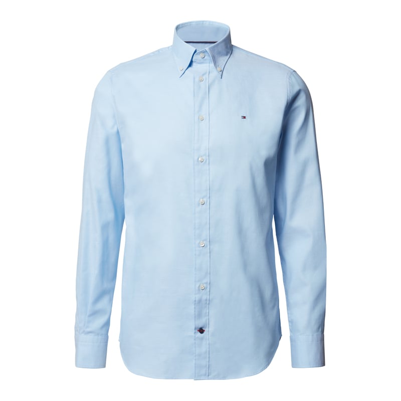Koszula casualowa męska Tommy Hilfiger, Czysta bawełna, Krój regular fit, Kołnierzyk typu under button down, Listwa guzikowa, Zaokrąglony dół, Fakturowany wzór, Wyhaftowane logo, Długość tyłu w rozmiarze 40: 80 cm, Szerokość ramion w rozmiarze 40: 45 cm, Długość rękawa w rozmiarze 40: 60 cm