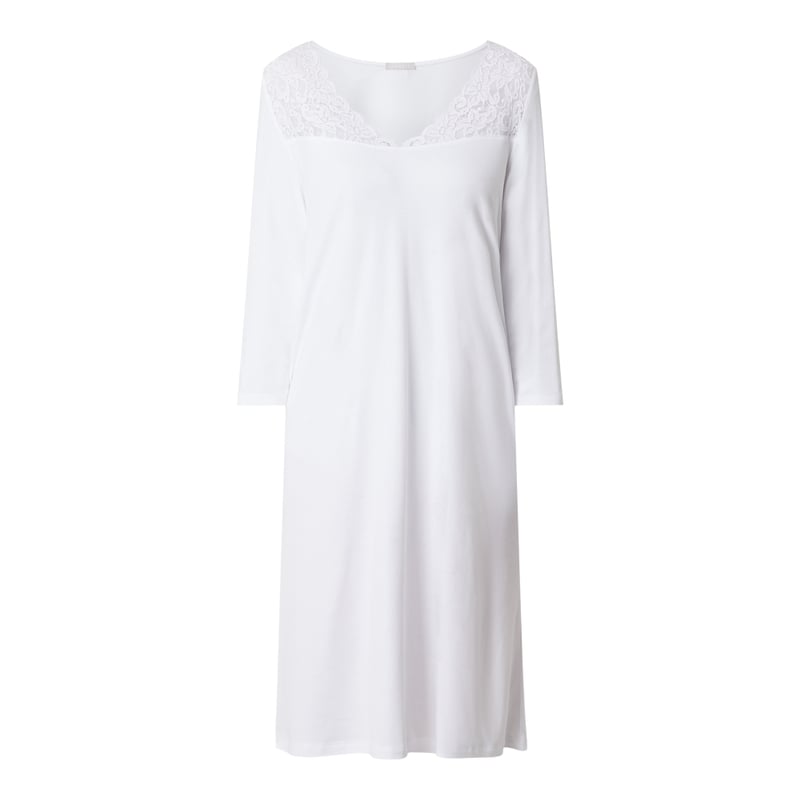 Koszula nocna damska HANRO, Bawełna merceryzowana , Luźny krój , Wstawka w kontrastowym kolorze z koronki , Dekolt w serek , Rękaw o dł. 3/4 , Długość tyłu w rozmiarze S: 96 cm