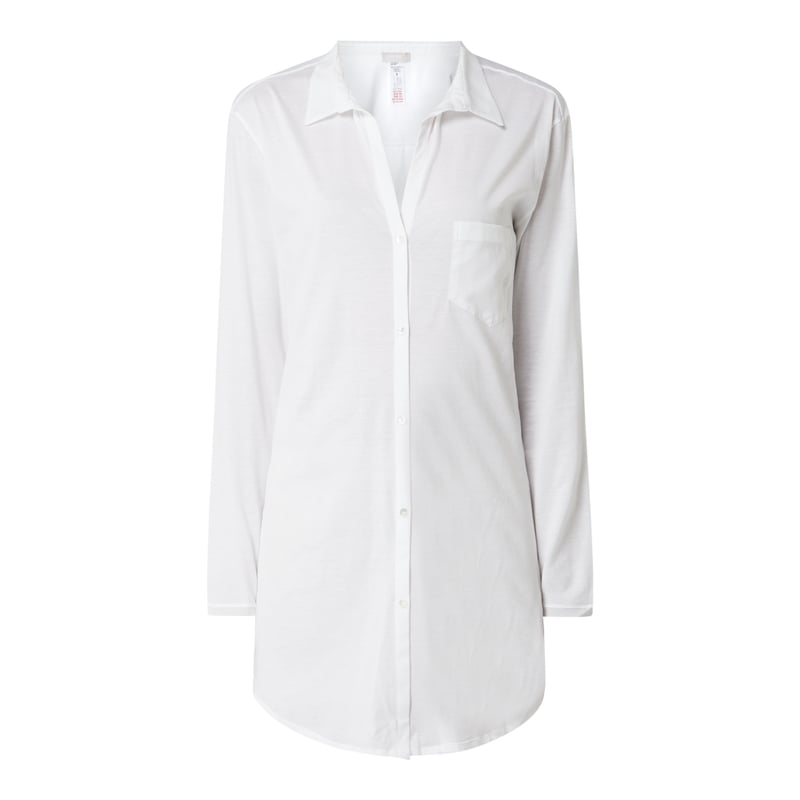 Koszula nocna damska HANRO, Bawełna merceryzowana , Luźny krój , Wykładany kołnierz, Listwa guzikowa, Długie rękawy , Kieszeń na piersi, Długość tyłu w rozmiarze S: 88 cm, Długość rękawa w rozmiarze S: 62 cm