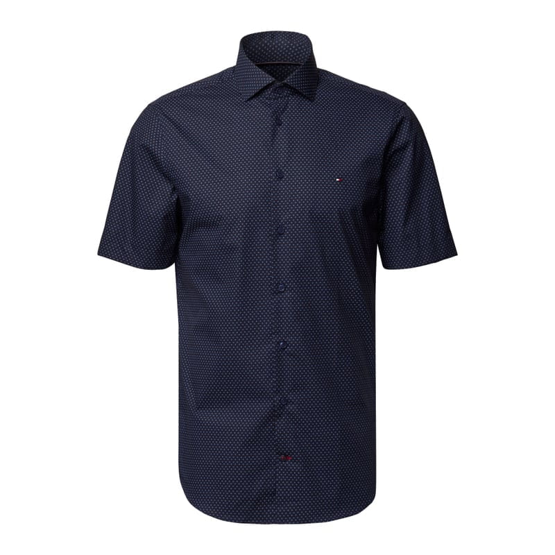Koszula męska Tommy Hilfiger, Czysta bawełna, Krój slim fit, Wzór na całej powierzchni, Listwa guzikowa, Wyhaftowane logo, Długość tyłu w rozmiarze 40: 80 cm, Szerokość ramion w rozmiarze 40: 44 cm, Długość rękawa w rozmiarze 40: 22 cm