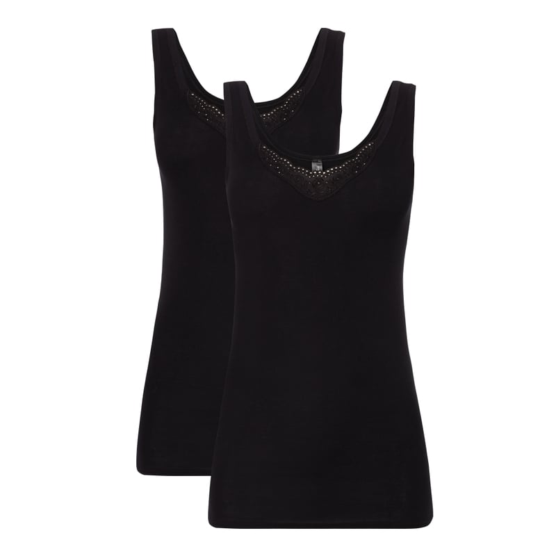 Top damski Schiesser, Czysta bawełna, Dopasowany krój, Okrągły dekolt, Wstawka z koronki, Zestaw 2 szt., Długość tyłu w rozmiarze 36: 65 cm