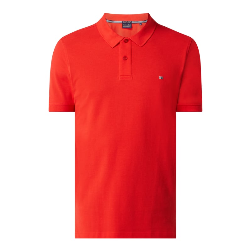 Koszulka polo męska Christian Berg Men, Czysta bawełna Supima®, Prosty krój, Pika, Kołnierzyk polo, Krótka listwa guzikowa, Ściągacze na rękawach, Wyhaftowane logo na wysokości piersi, Krótkie rozporki po bokach, Długość tyłu w rozmiarze M: 70 cm