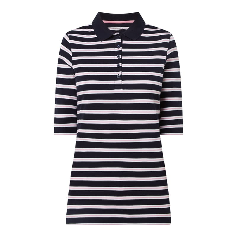 Koszulka polo damska Christian Berg Women, Czysta bawełna pima, Prosty krój , Wzór w paski , Kołnierzyk polo, Krótka listwa guzikowa , Rozcięcia po bokach , Długość tyłu w rozmiarze 36: 65 cm