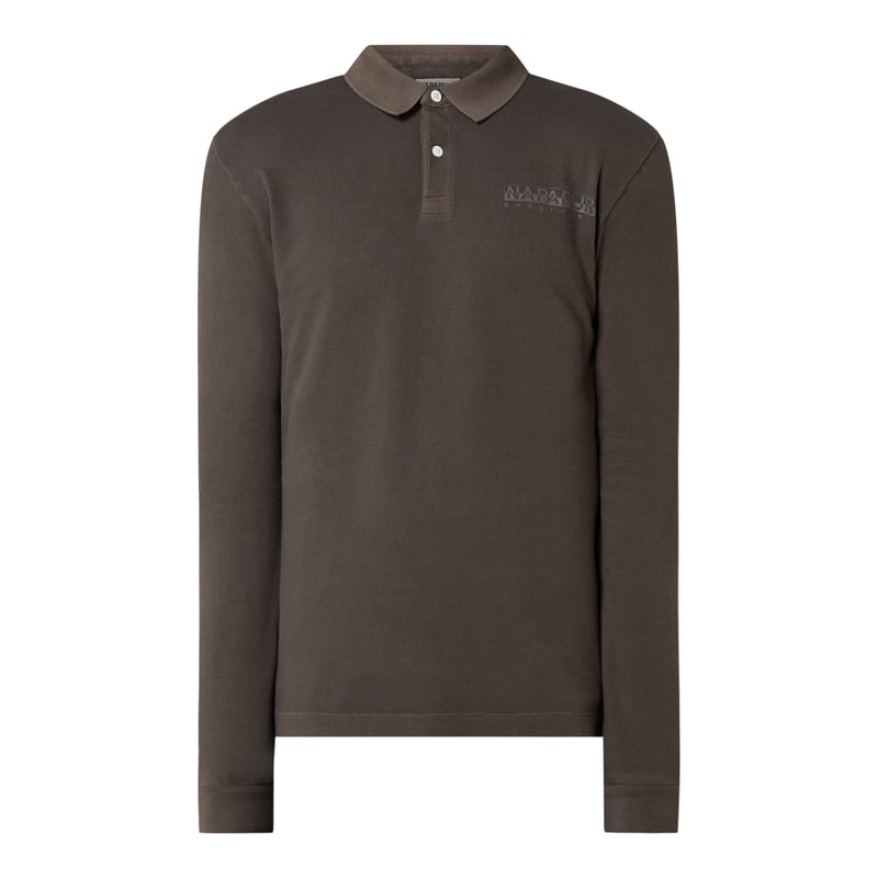Koszulka polo męska Napapijri, Czysta bawełna , Prosty krój , Tkana faktura , Kołnierzyk polo , Krótka listwa guzikowa , Długie rękawy , Długość tyłu w rozmiarze M: 71 cm, Długość rękawa w rozmiarze M: 66 cm