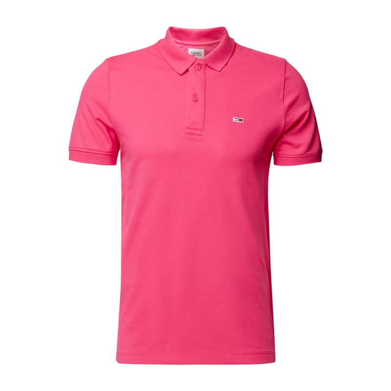 Koszulka polo męska Tommy Jeans, Mieszanka bawełny i elastanu, Prosty krój, Kołnierzyk polo, Krótka listwa guzikowa, Rozcięcia po bokach, Subtelna naszywka z logo, Długość tyłu w rozmiarze M: 69 cm