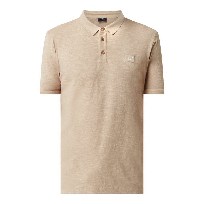 Koszulka polo męska JOOP! JEANSY, Mieszanka bawełny i lnu, Prosty krój, Kołnierzyk polo, Krótkie rękawy z przeszytą zakładką, Krótka listwa guzikowa, Logo, Krótkie rozporki po bokach, Długość tyłu w rozmiarze M: 70 cm