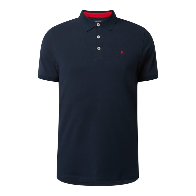 Koszulka polo męska JACK & JONES, Czysta bawełna , Prosty krój , Pika, Kołnierzyk polo z paskami w kontrastowym kolorze , Krótka listwa guzikowa , Rękawy z wykończeniem w kontrastowym kolorze, Wyhaftowane logo , Better Cotton Initiative, Długość tyłu w rozmiarze M: 76 cm