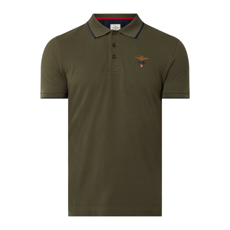 Koszulka polo męska Aeronautica Militare, Czysta bawełna , Prosty krój , Pika, Kołnierzyk polo, Krótka listwa guzikowa , Krótkie rozporki po bokach , Wyhaftowane logo , Detale w kontrastowym kolorze, Długość tyłu w rozmiarze M: 69 cm