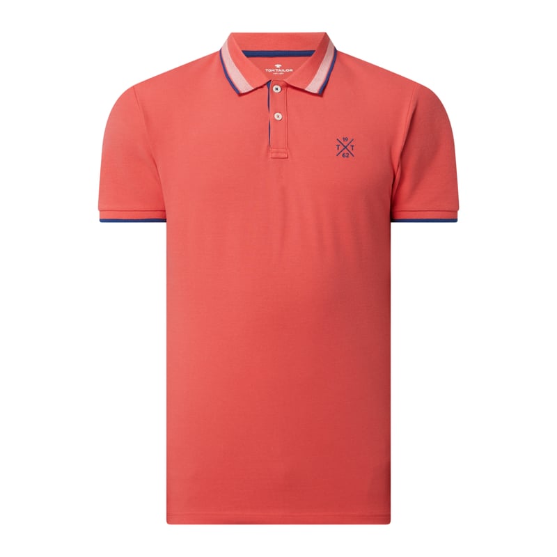 Koszulka polo męska TOM TAILOR, Mieszanka bawełny z dodatkiem wiskozy i streczu , Prosty krój , Pika, Kołnierzyk polo z paskami w kontrastowym kolorze , Krótka listwa guzikowa , Rękawy z wykończeniem w kontrastowym kolorze, Wyhaftowane logo , Długość tyłu w rozmiarze M: 66 cm