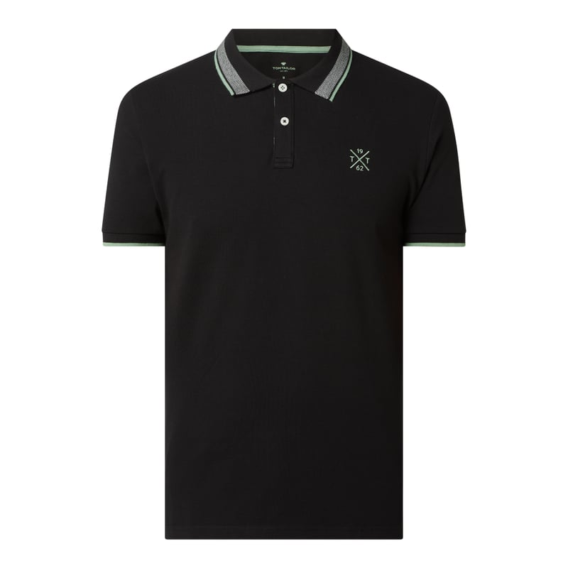 Koszulka polo męska TOM TAILOR, Mieszanka bawełny z dodatkiem wiskozy i streczu , Prosty krój , Pika, Kołnierzyk polo z paskami w kontrastowym kolorze , Krótka listwa guzikowa , Rękawy z wykończeniem w kontrastowym kolorze, Wyhaftowane logo , Długość tyłu w rozmiarze M: 66 cm