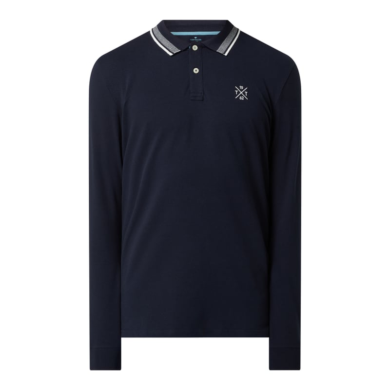 Koszulka polo męska TOM TAILOR , Mieszanka bawełny z dodatkiem streczu i wiskozy , Prosty krój , Pika , Kołnierzyk polo , Krótka listwa guzikowa , Długie rękawy , Wyhaftowane logo , Długość tyłu w rozmiarze M: 74 cm, Długość rękawa w rozmiarze M: 67 cm