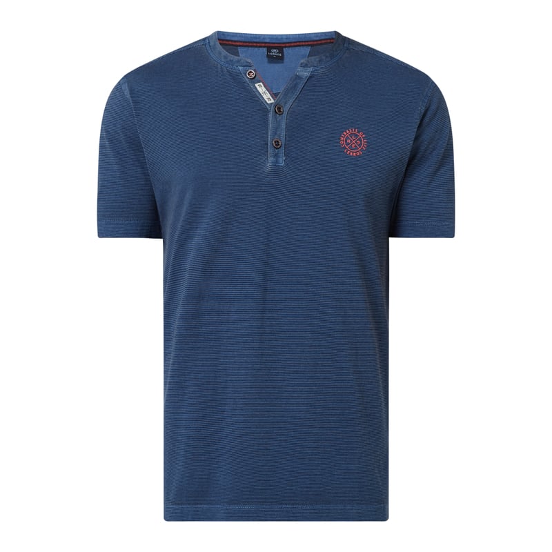 Koszulka serafino męska LERROS, Czysta bawełna , Prosty krój , Wzór w paski , Dekolt z guzikami, Krótkie rękawy , Logo , Długość tyłu w rozmiarze M: 74 cm