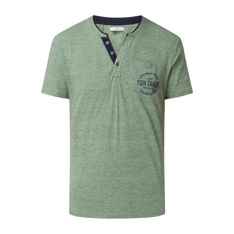 Koszulka serafino męska TOM TAILOR, Mieszanka bawełny , Prosty krój , Dżersej, Dekolt z guzikami, Kieszeń na piersi , Krótkie rękawy , Nadruk z logo , Długość tyłu w rozmiarze M: 70 cm
