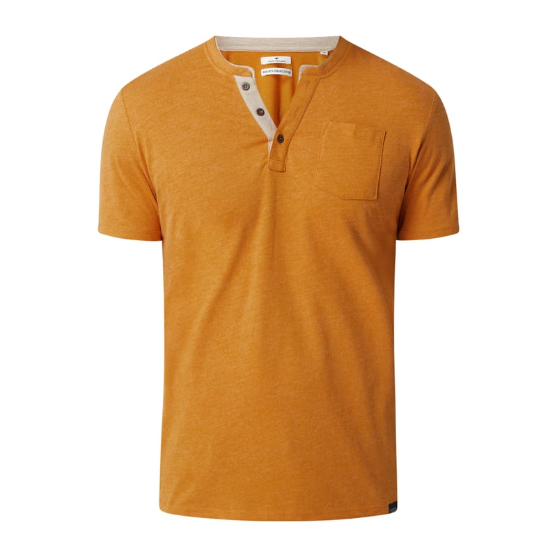 Koszulka serafino męska TOM TAILOR, Mieszanka bawełny ekologicznej , Prosty krój , Okrągły dekolt z efektem dwóch warstw, Krótka ozdobna listwa guzikowa, Kieszeń na piersi , Naszywka z logo na dole, Długość tyłu w rozmiarze M: 70 cm
