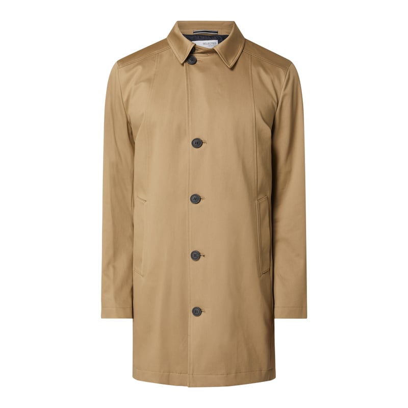 Płaszcz krótki męski SELECTED HOMME, Mieszanka bawełny ekologicznej , Prosty krój , Wykładany kołnierz , Listwa guzikowa , Boczne wpuszczane kieszenie , Karczek, Rozcięcie z tyłu, Długość tyłu w rozmiarze M: 89 cm , Szerokość ramion w rozmiarze M: 46 cm , Długość rękawa w rozmiarze M: 67,5 cm