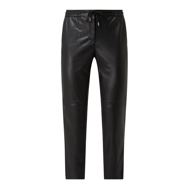 Kuloty damskie TOM TAILOR , Materiał skóropodobny , Krój loose fit , Elastyczna wstawka w pasie , Zapięcie na haftkę, guzik i zamek błyskawiczny , Wpuszczane kieszenie w stylu francuskim , Ozdobne wypustki z tyłu , Długość wewnętrzna nogawki w rozmiarze 36: 67 cm, Szerokość w pasie w rozmiarze 36: 76 cm