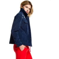 Kurtka damskaw stylu vintage nawiązująca do aktualnych światowych trendów w modzie kobiecej. Wygodne zapięcia na napy, prosty krój oraz cztery kieszenie sprawiają, że to model niezwykle praktyczny. Casualowy charakter kurtki wpisze się w większość dziennych stylizacji, a nietuzinkowe hafty przy dekolcie oraz na plecach urzekną osoby poszukujące zaskakujących wykończeń w minimalistycznych fasonach. model wykonany z najwyższej jakości materiałów; zapinany na napy; wykończony wykładanym kołnierzem; posiada dwie otwarte kieszenie zewnętrzne i dwie kieszenie zapinane na napy; mankiety zapinane na napy.