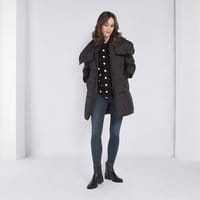 Kurtka z przylegającym rękawkiemPikowana kurtka damskawypełniona puchem i pierzem. Ciepły model oversize o średniej długości posiada szeroki wykładany kołnierz oraz ściągacz z dzianiny osłaniający szyję, które osłonią szyję przed wiatrem i niską temperaturą. Czarnakurtka damska została pomysłowo wykończona: puchowy rękaw kończy się na wysokości łokcia, a na końcach posiada otulający rękawek z prążkowanego materiału, który przylega do ciała.Nasza rada: przylegający do ciała rękawek wysmukli sylwetkę. wykonana z materiałów najwyższej jakości; zapinana na suwak po bokach rozpinany suwak; wykończona kołnierzem zapinanym na suwak.