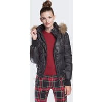 Pikowana kurtka z kapturemKrótka pikowana kurtka damska z kapturem wykończonym futrem. Model wypełniony naturalnym puchem oraz ociepliną poliestrową doskonale osłoni w najchłodniejsze dni. Krótki model i ściągacz w talii sprawi, że puchowe okrycie nie zniekształci figury i nie doda jej objętości. Kurtka dostępna jest w trzech kolorach: czarnym, zielonym i czerwonym.Nasza rada: naturalny puch w kurtce to niezawodny materiał ocieplający jesienno-zimowe okrycia. zapinana na suwak; dwie zewnętrzne kieszenie zapinane na zatrzask; fason podkreślony odpinanym kapturem z odpinanym, naturalnym futrem z szopa.