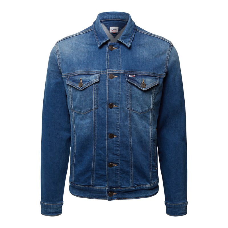 Kurtka jeansowa męska Tommy Jeans, Mieszanka bawełny i elastanu , Krój regular fit , Wykładany kołnierz, Listwa guzikowa , Kieszenie z patką zapinane na guzik, Wpuszczane kieszenie, Mankiety zapinane na guzik, Szwy działowe , Detal z logo , Naszywka z logo z tyłu , Długość tyłu w rozmiarze M: 61 cm, Szerokość ramion w rozmiarze M: 43 cm, Długość rękawa w rozmiarze M: 64 cm