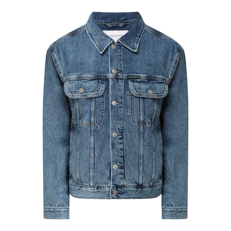 Kurtka jeansowa męska Calvin Klein Jeans, Czysta bawełna , Prosty krój, Wykładany kołnierz, Listwa guzikowa , Zapięcie na guzik i zamek błyskawiczny , Kieszenie z patką , Wpuszczane kieszenie , Naszywka z logo , Długość tyłu w rozmiarze M: 62 cm, Szerokość ramion w rozmiarze M: 52 cm, Długość rękawa w rozmiarze M: 64 cm