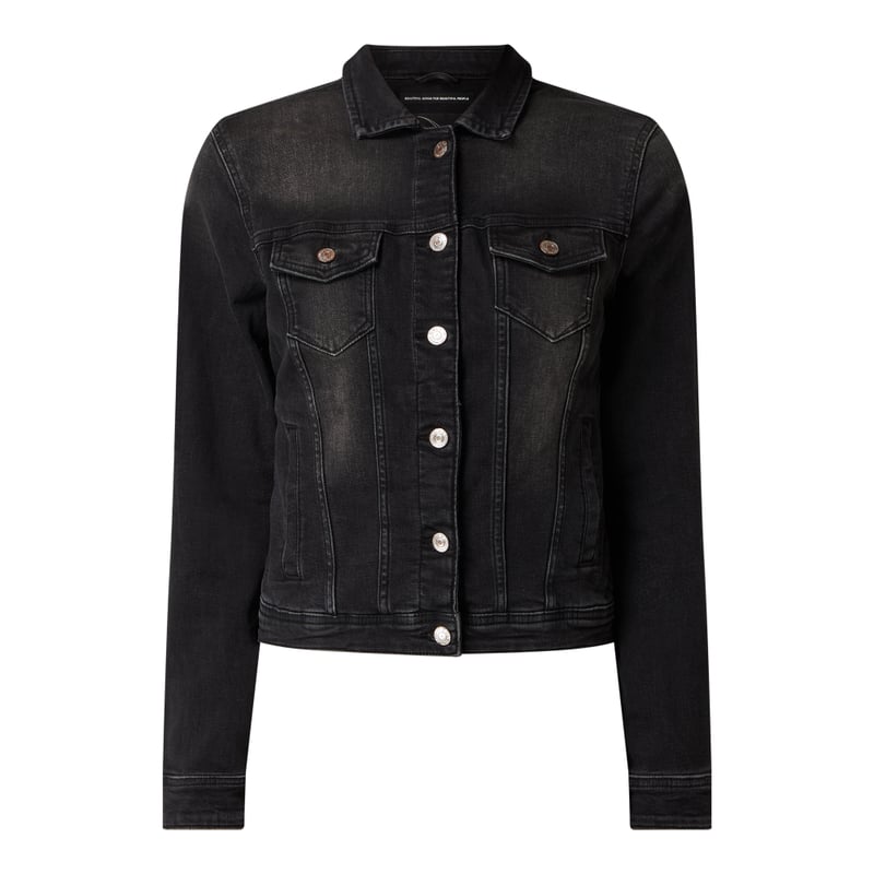 Kurtka jeansowa damska ONLY , Mieszanka bawełny i elastanu , Taliowany krój , Wykładany kołnierz , Listwa guzikowa , Kieszenie z patką , Wpuszczane kieszenie , Mankiety zapinane na guzik , Długość tyłu w rozmiarze 36: 51 cm, Szerokość ramion w rozmiarze 36: 39 cm, Długość rękawa w rozmiarze 36: 63 cm