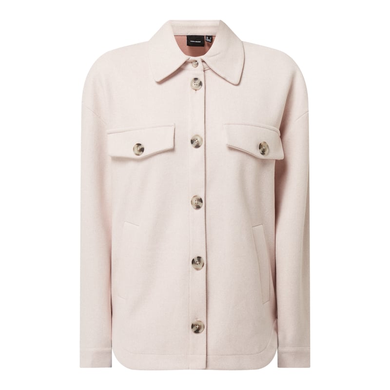 Kurtka damska VERO MODA , Poliester z recyklingu , Oversized , Styl utility , Wykładany kołnierz , Obniżone ramiona , Listwa guzikowa , Ozdobne patki , Wpuszczane kieszenie , Długość tyłu w rozmiarze S: 72 cm, Długość rękawa w rozmiarze S: 53 cm