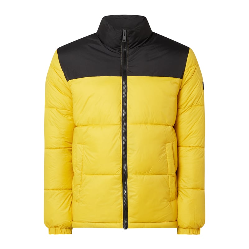Kurtka pikowana męska JACK & JONES, Wytrzymały materiał, Prosty krój, Stójka, Wstawka w kontrastowym kolorze, Zamek błyskawiczny, Logo, Kieszenie z wypustką na zatrzask , Elastyczne mankiety, Tunel na dole, Watowanie, Długość tyłu w rozmiarze M: 69 cm, Szerokość ramion w rozmiarze M: 48 cm, Długość rękawa w rozmiarze M: 62 cm